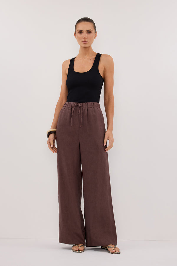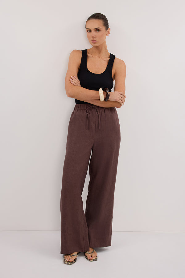GINA CHOC LINEN ELASTIC WAIST PANT