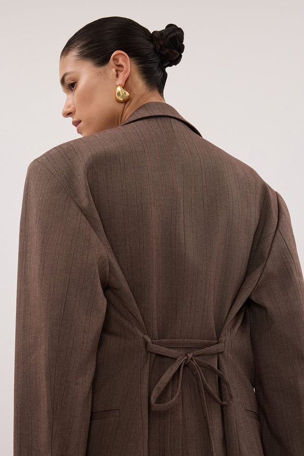 HAILEY CHOC OVERSIZED STRIPE TIE BLAZER