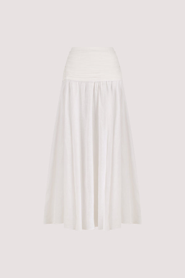 HALLIE WHITE LINEN MIDI SKIRT