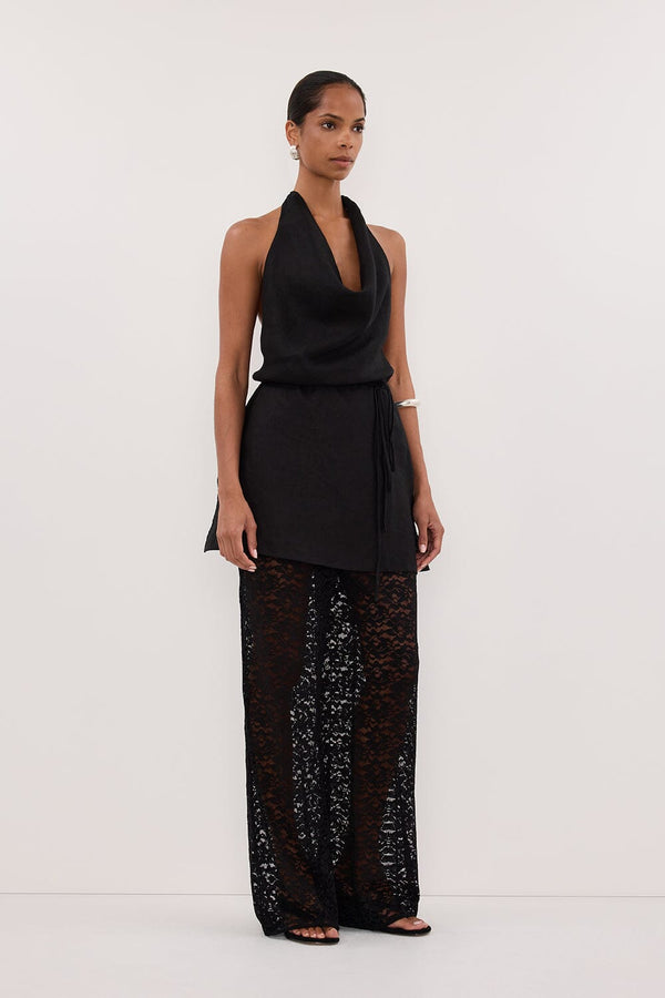 HAYLEE BLACK LINEN COWL TOP - PRE ORDER