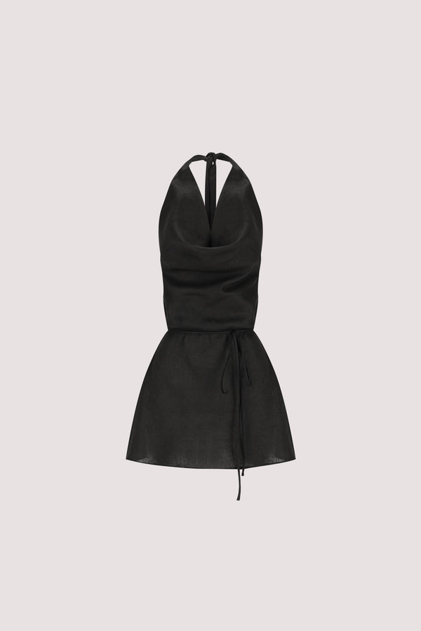 HAYLEE BLACK SLEEVELESS LINEN COWL TOP