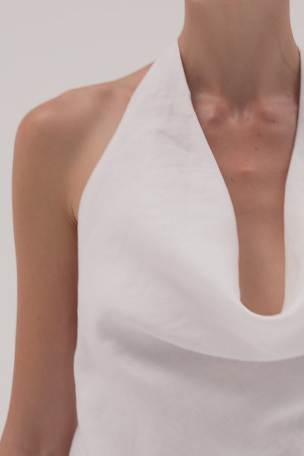 HAYLEE WHITE SLEEVELESS LINEN COWL TOP