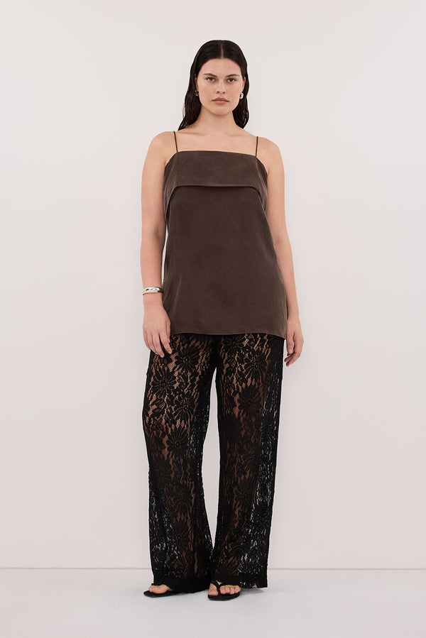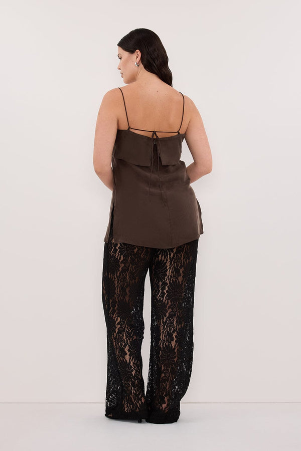 IDA BITTER CHOC SLEEVELESS FOLDOVER CAMI TOP