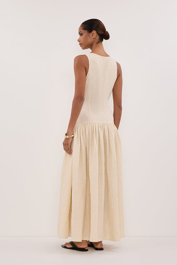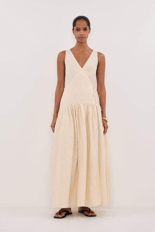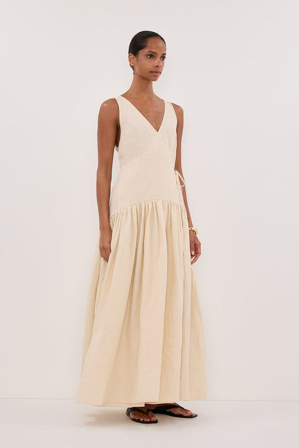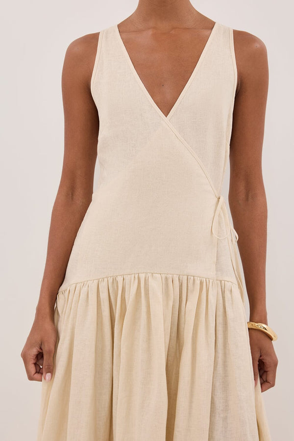 ILIO STRAW LINEN WRAP MIDI DRESS
