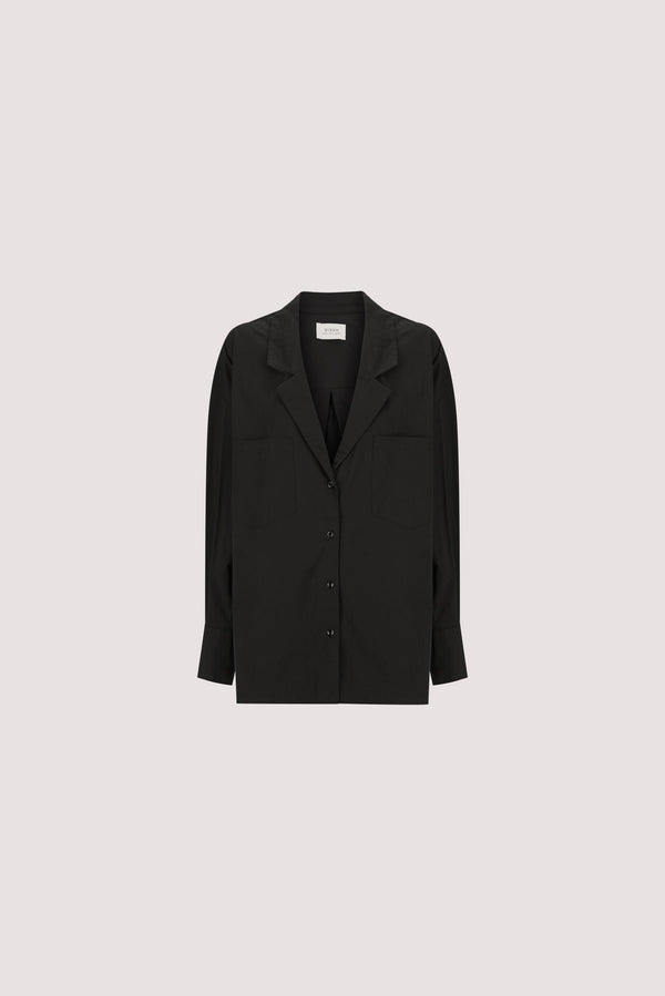 IRENE BLACK LONG SLEEVE NOTCH COLLAR SHIRT