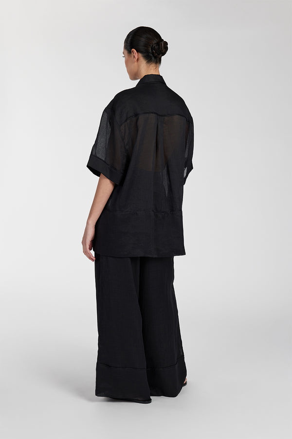 - Relaxed, wide leg silhouette featuring an extended hemline