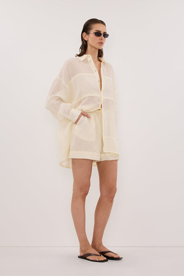 - High rise sheer ramie short