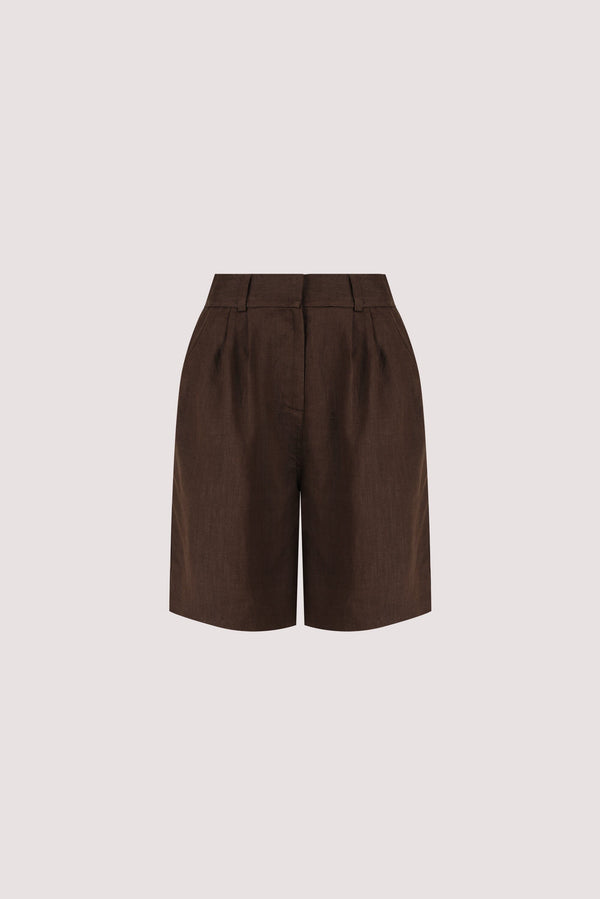 KAYLA BITTER CHOC LINEN BERMUDA SHORT