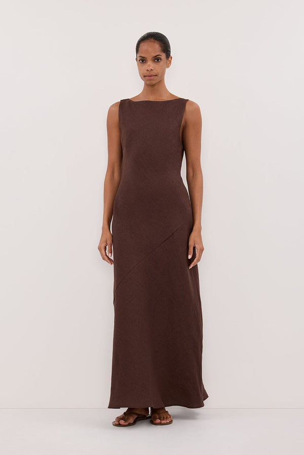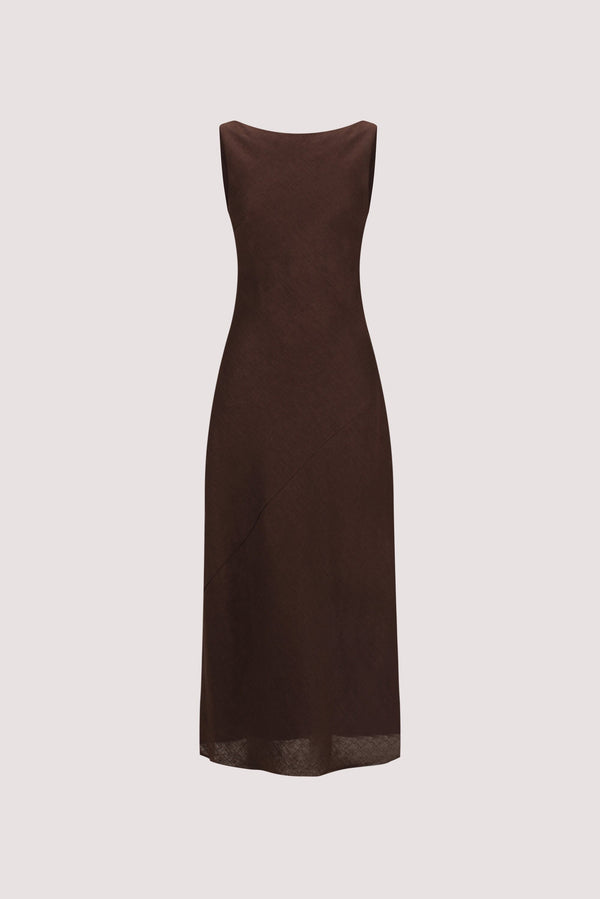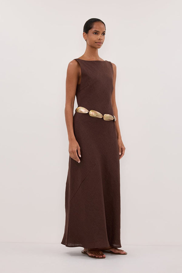 LACY COCOA SLEEVELESS LINEN MIDI DRESS