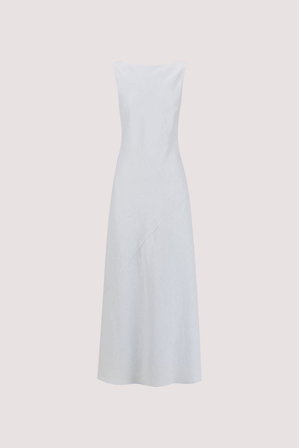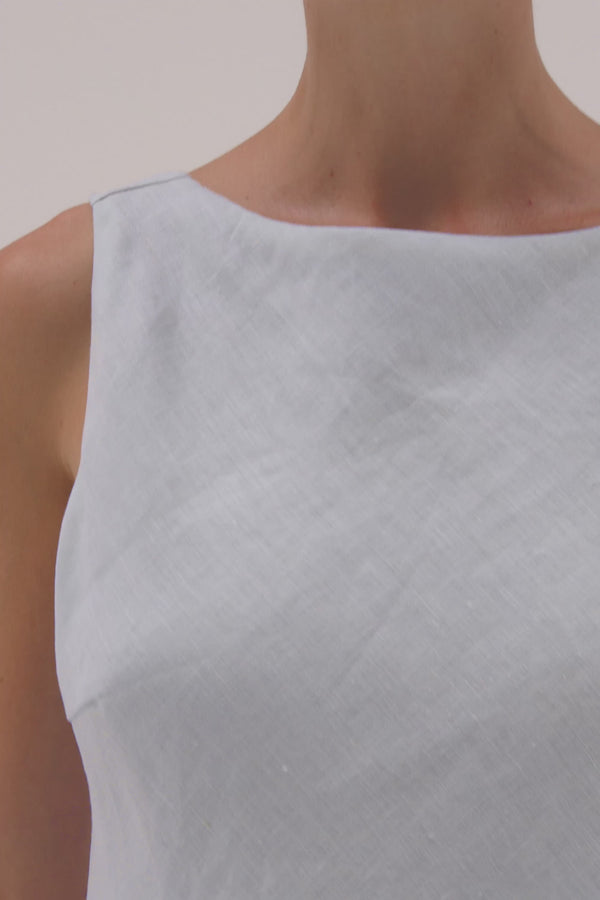 LACY CORNFLOWER SLEEVELESS LINEN MIDI DRESS