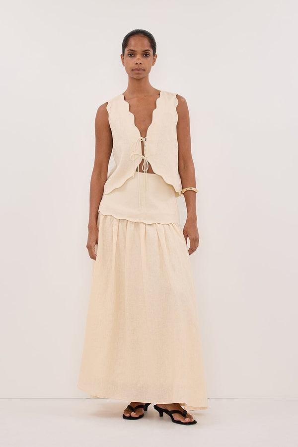 LELA SANDSTONE LINEN MIDI SKIRT - PRE ORDER