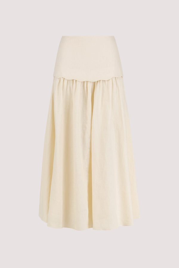 LELA SANDSTONE LINEN MIDI SKIRT