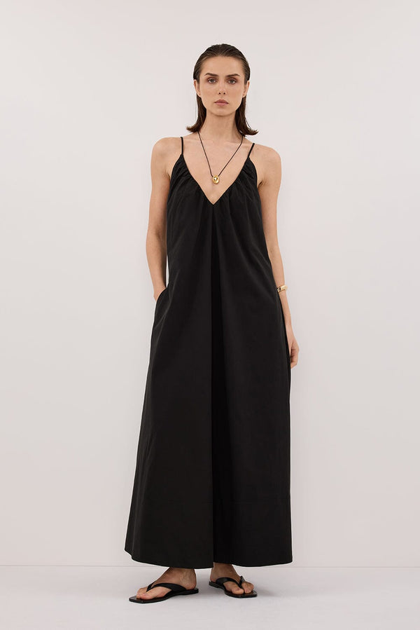 LIANA BLACK SLEEVELESS POPLIN TENT MIDI DRESS