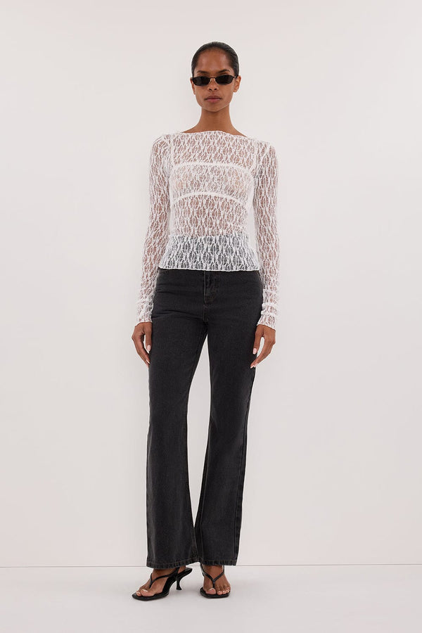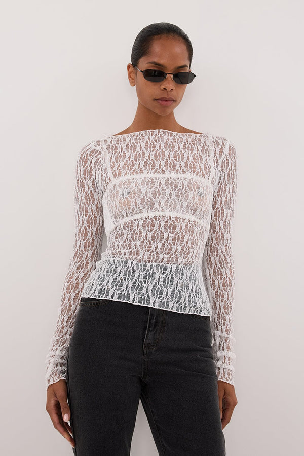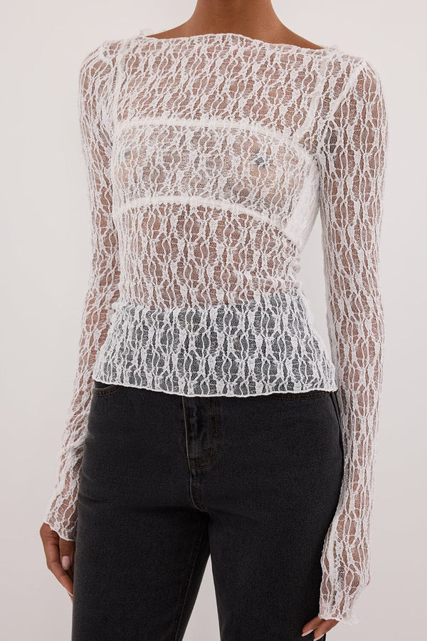 LIZZIE WHITE LACE LONG SLEEVE TOP