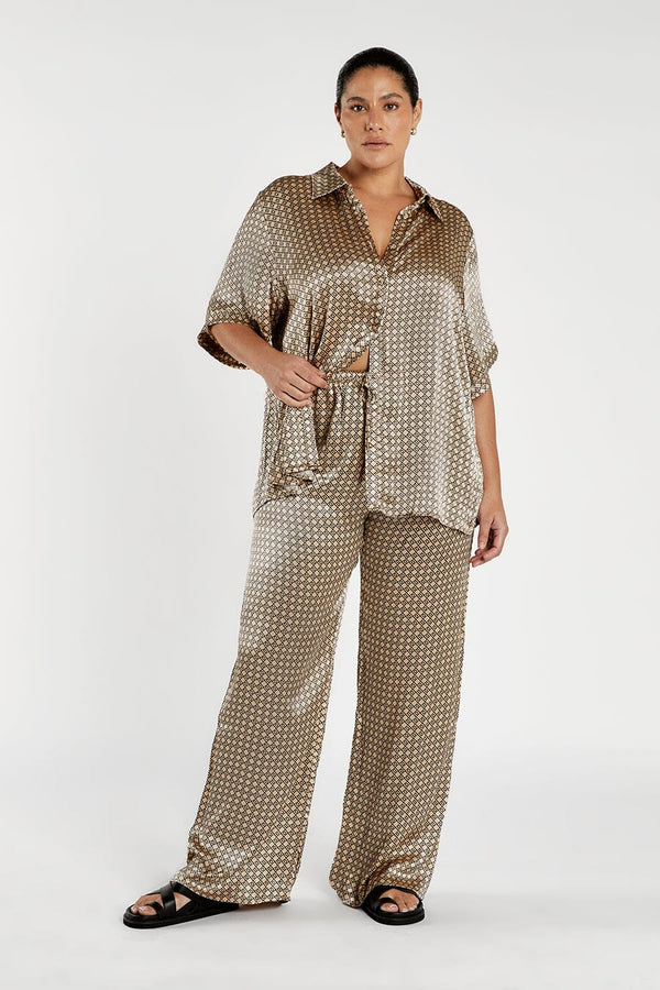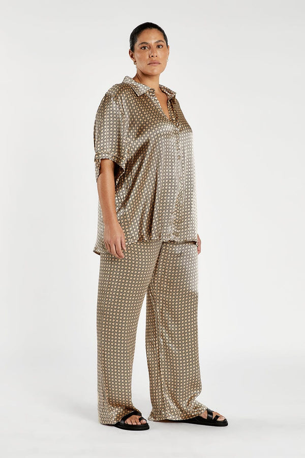 - Elasticated waist for a comfortable fit, straight cut through the legs