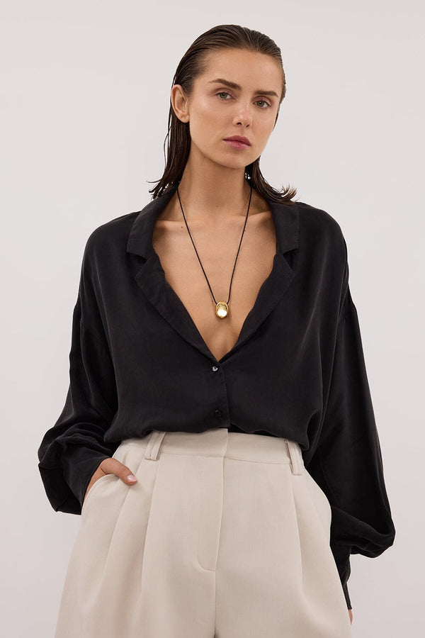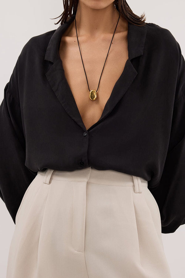 LUCILLE BLACK LONG SLEEVE CUPRO SHIRT