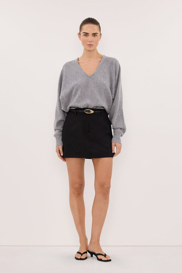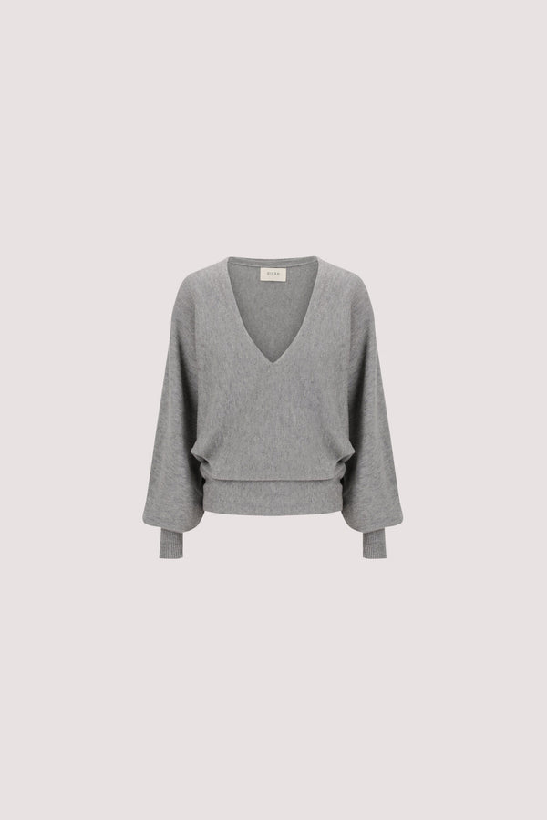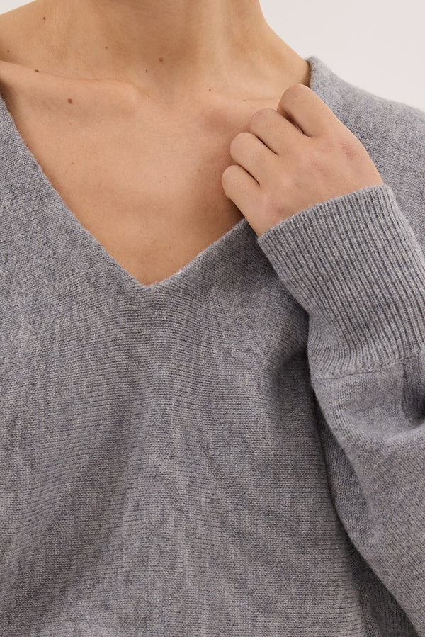 LUMI GREY MARLE V NECK MERINO KNIT JUMPER