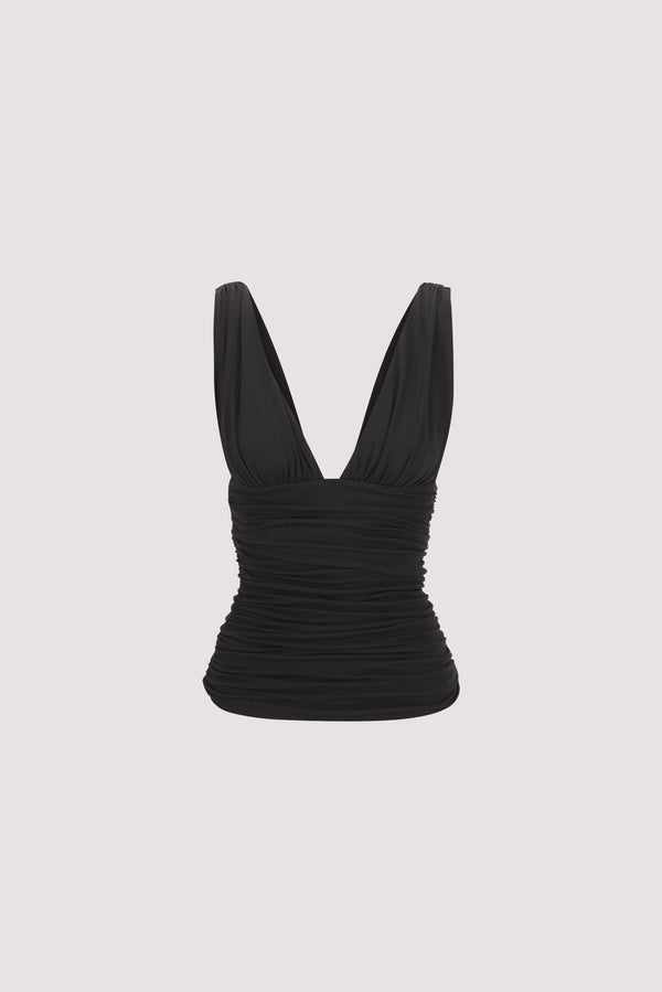 MAGNOLIA BLACK SLEEVELESS RUCHED TOP
