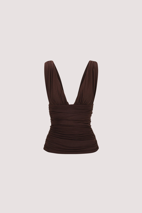 MAGNOLIA CHOC SLEEVELESS RUCHED TOP