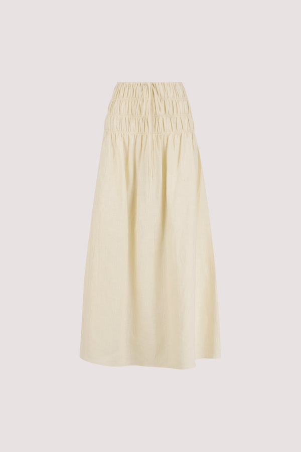MAIA STRAW LINEN SHIRRED MIDI SKIRT