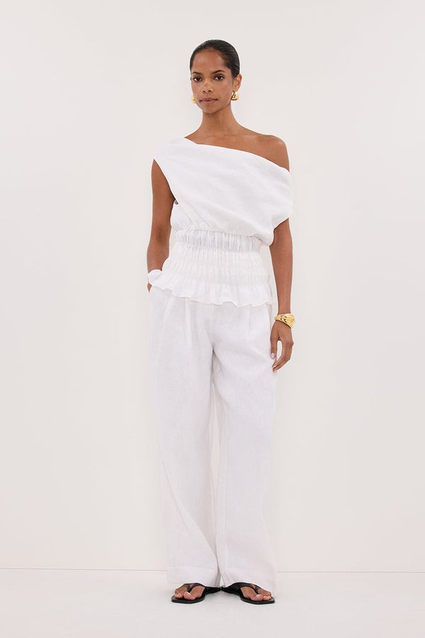 MAIA WHITE SLEEVELESS LINEN SHIRRED TOP