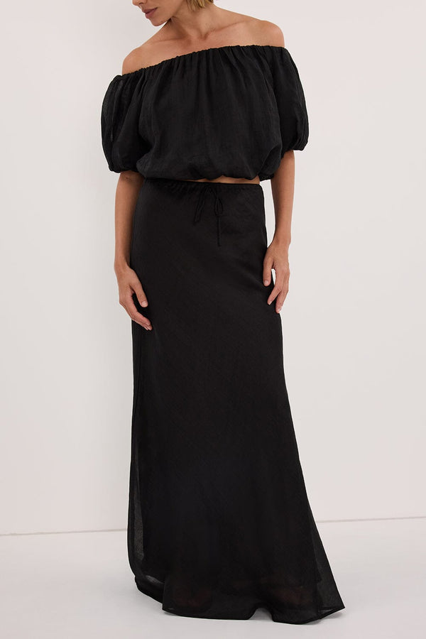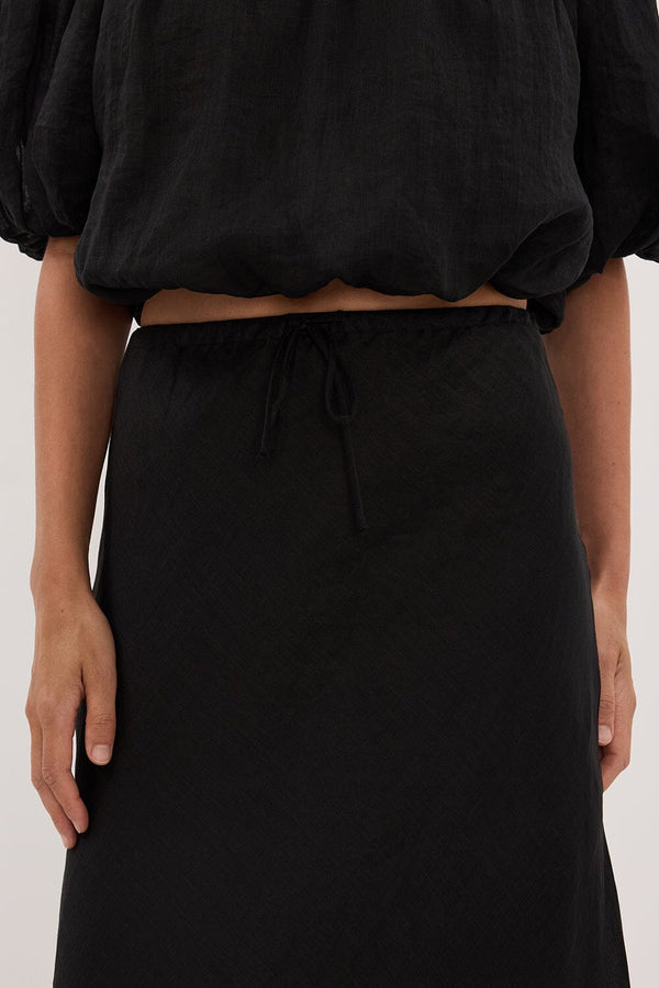 MAISON BLACK RAMIE BIAS MIDI SKIRT