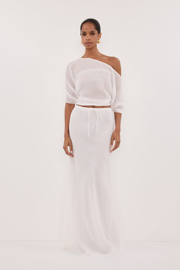MAISON WHITE RAMIE BAIS MIDI SKIRT