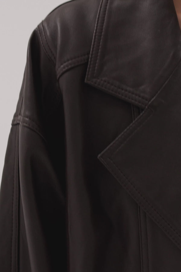 MARGOT CHOC OVERSIZED LEATHER JACKET