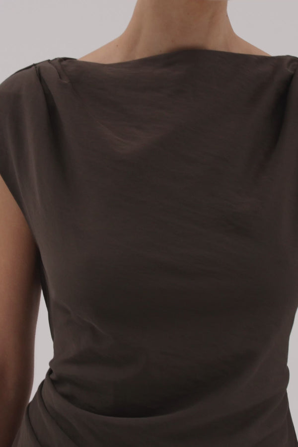 MARMO CHOCOLATE DRAPED MINI DRESS