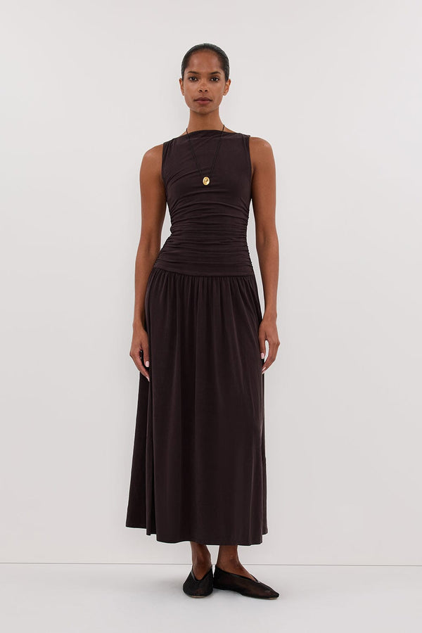 MEG BURNT CHOC SLEEVELESS KNIT MIDI DRESS
