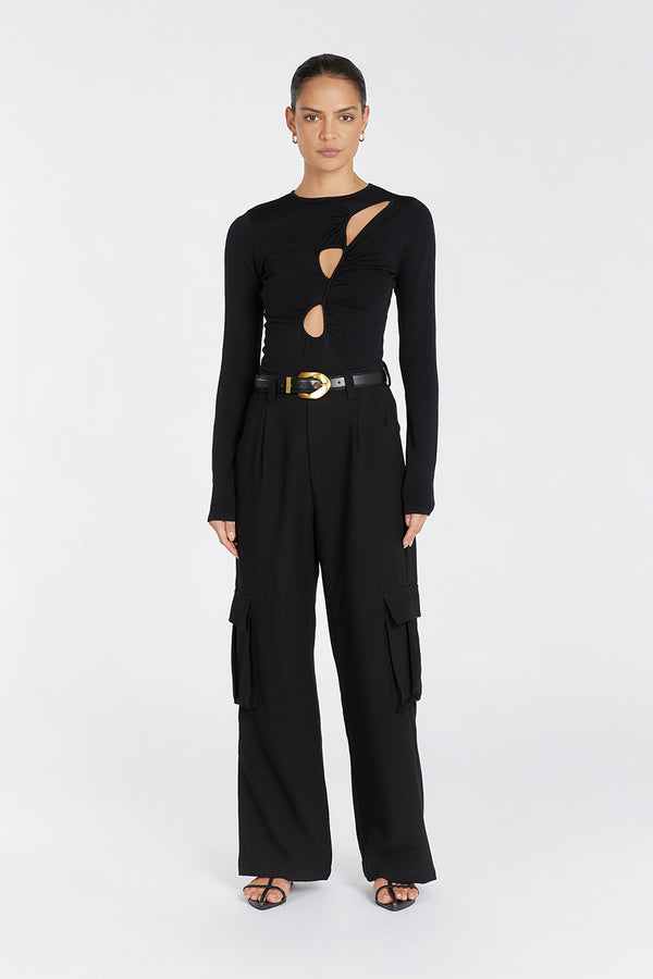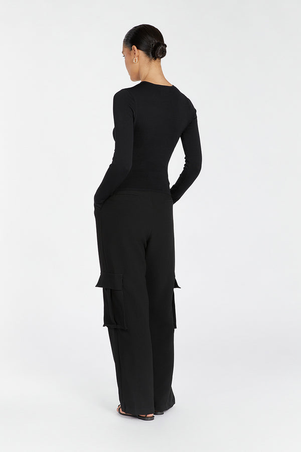 MONIQUE BLACK LONG SLEEVE KNIT TOP
