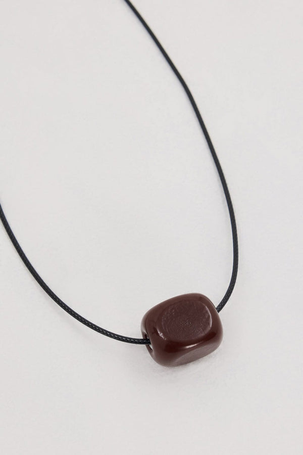 NURI STUDIO GLASS CUBE BROWN NECKLACE