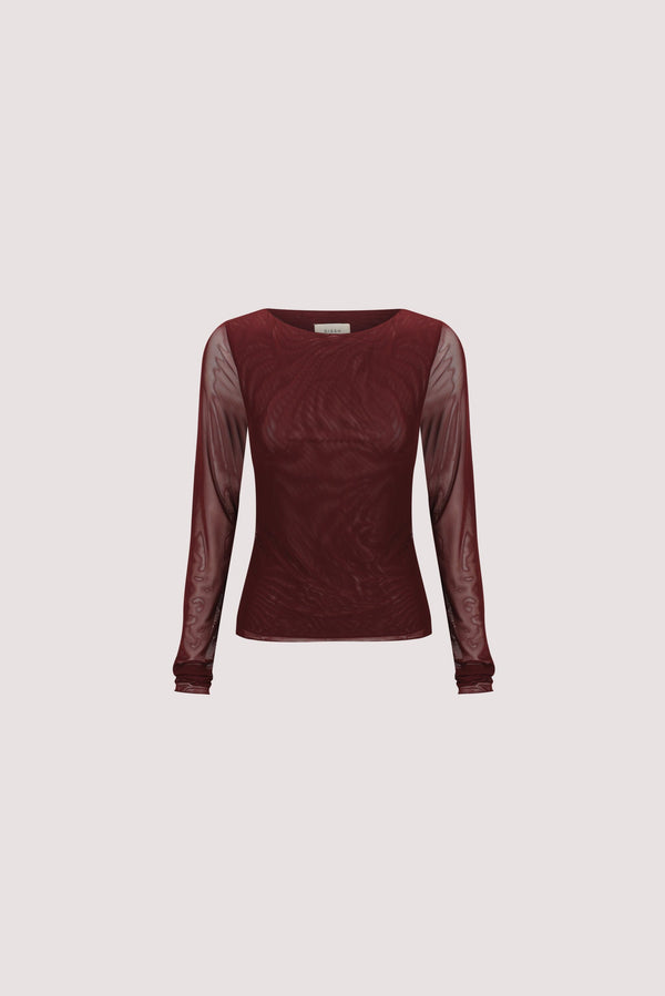 NYRA WINE LONG SLEEVE MESH TOP