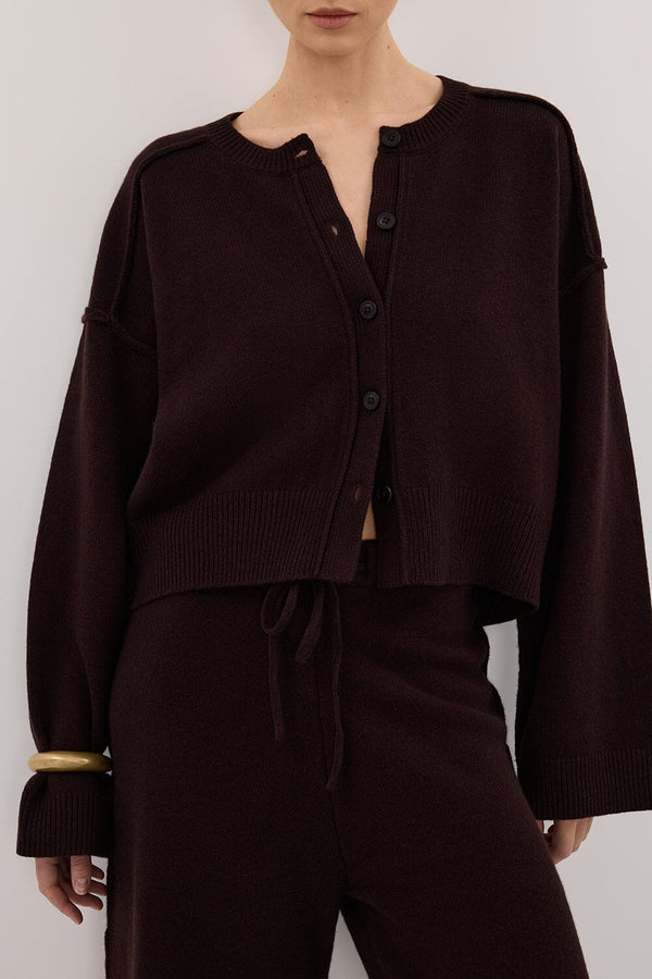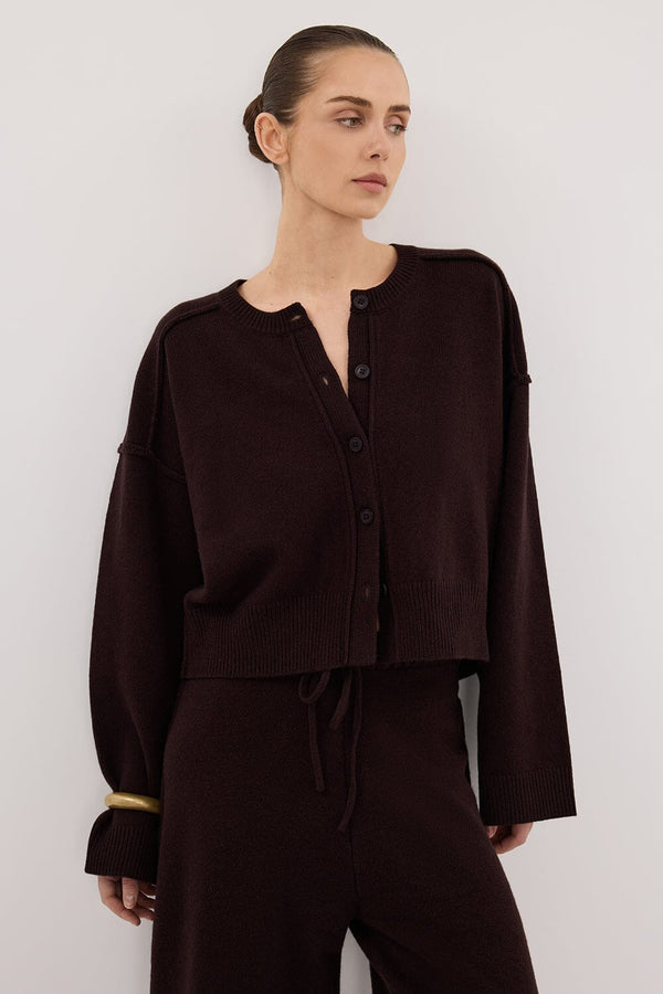 PAIGE CHOC WOOL KNIT CARDIGAN