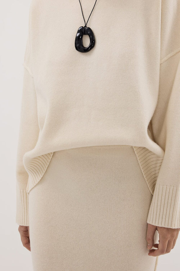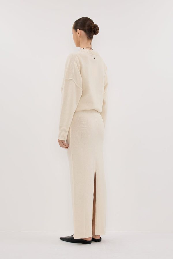 PAIGE CREAM WOOL KNIT MIDI SKIRT