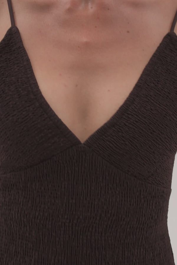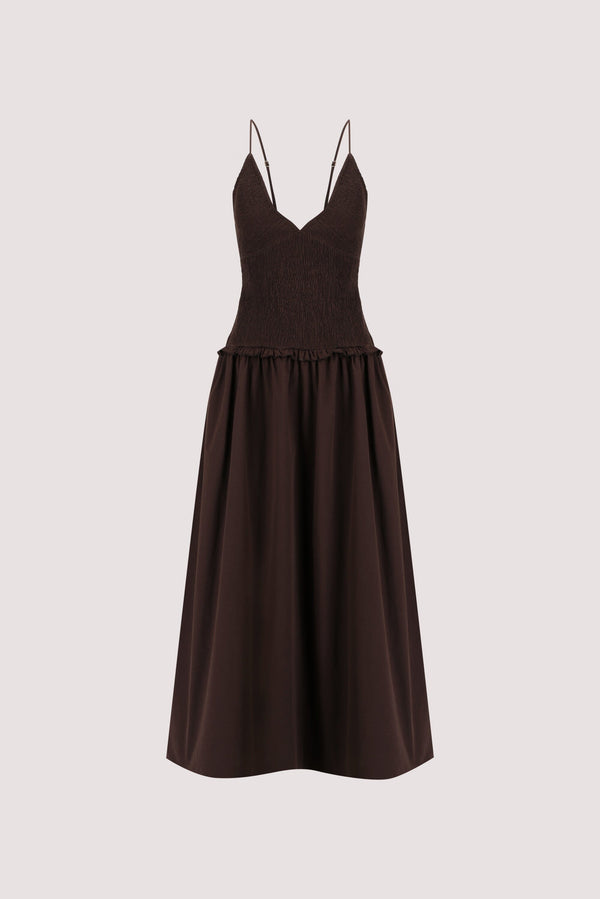 RAMONA BURNT CHOC SLEEVELESS COTTON MIDI DRESS