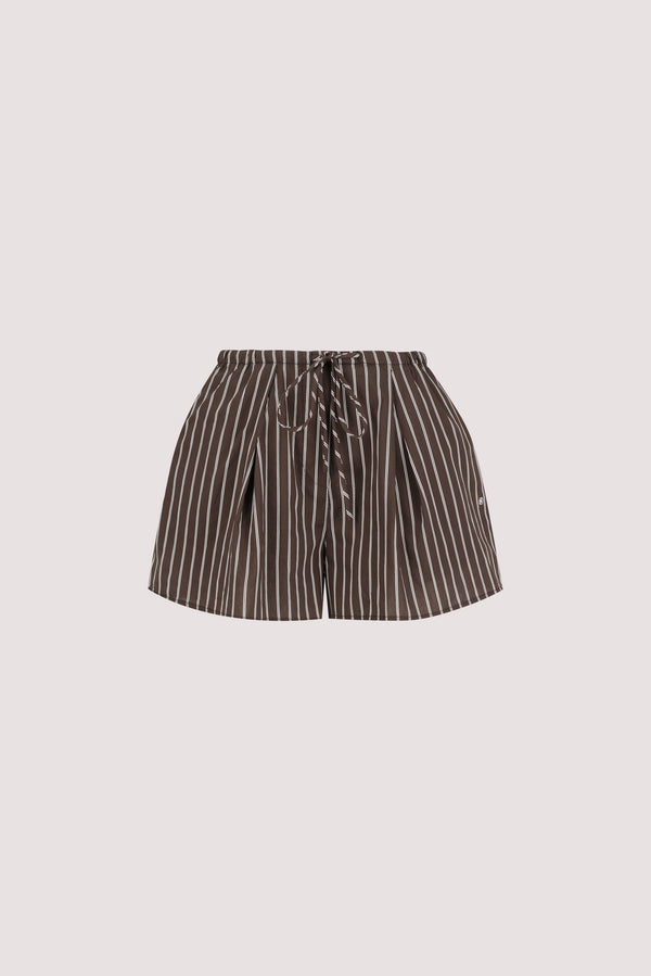 - High rise choc stripe silk blend short