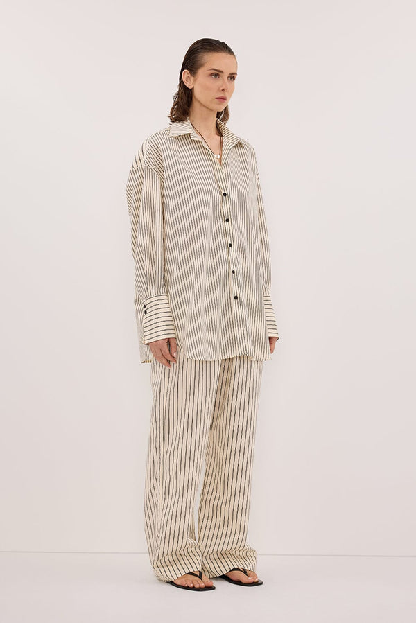 - High rise stripe silk blend pant