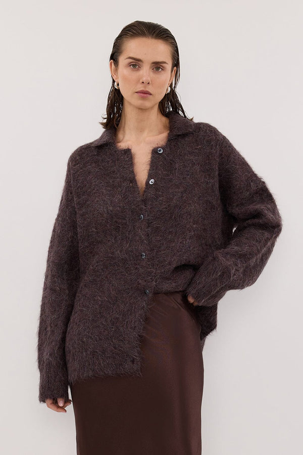 SALMA WINE POLO NECK KNIT CARDIGAN