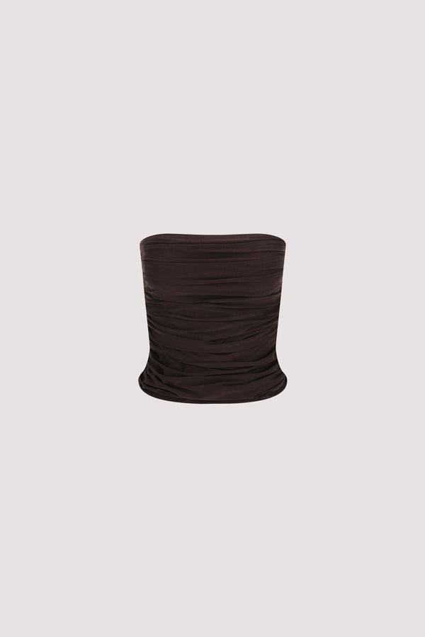 SHARI BURNT CHOC STRAPLESS BANDEAU TOP