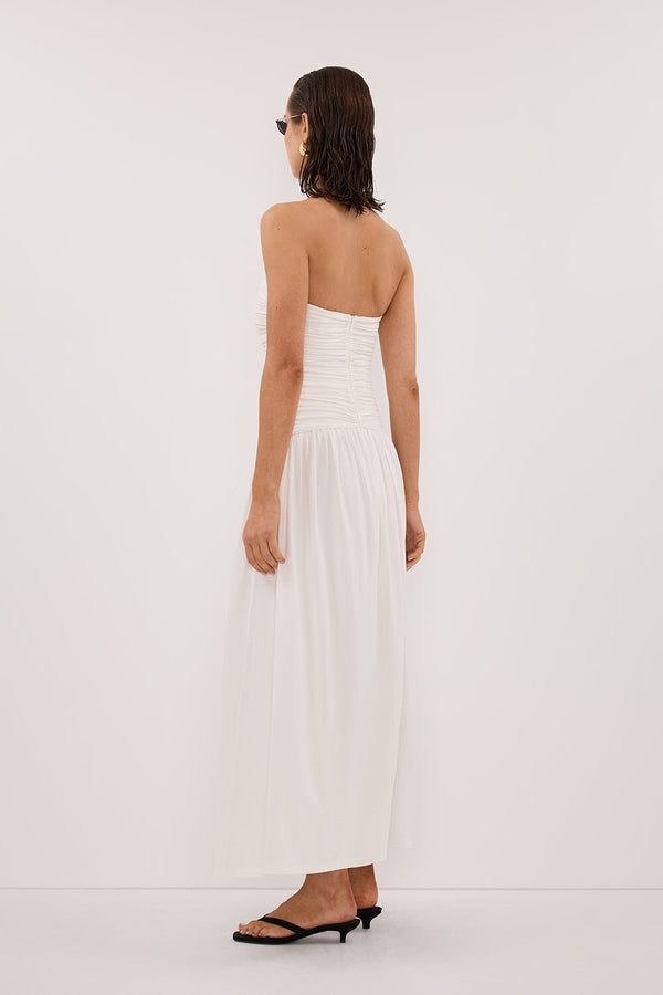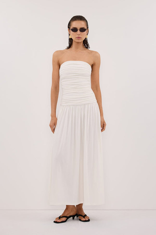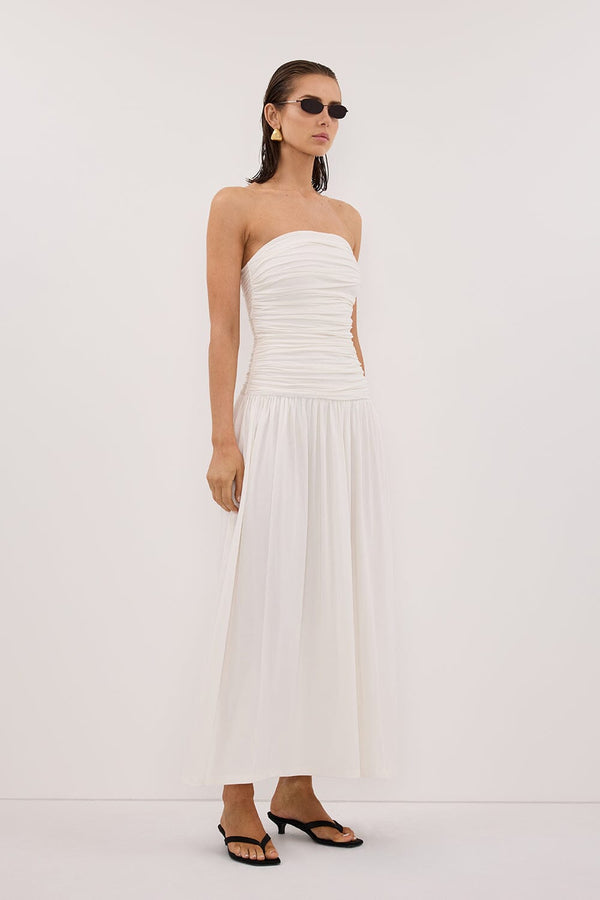 SHARI OFF WHITE STRAPLESS BANDEAU MIDI DRESS