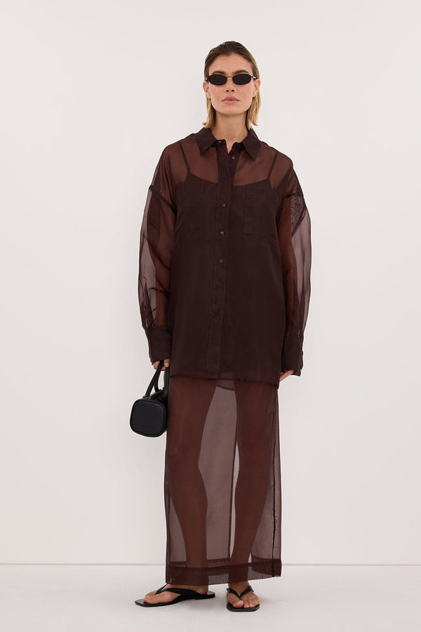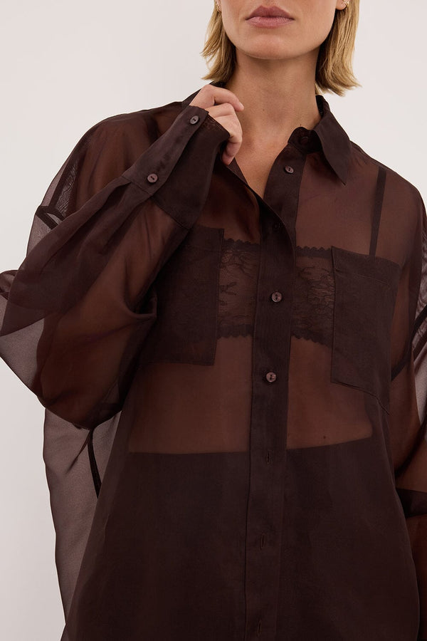 SIAN DARK CHOC SILK ORGANZA SHIRT