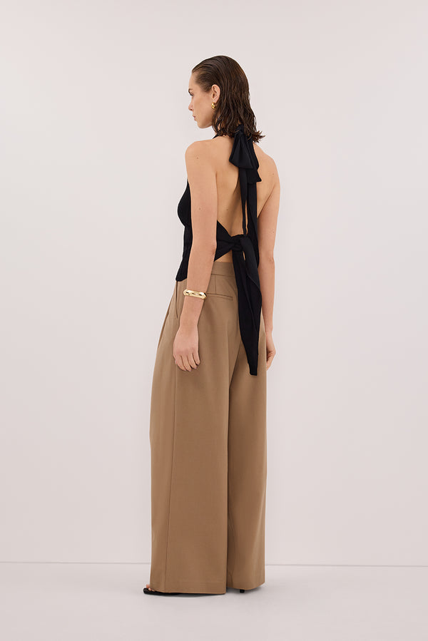 SOL BLACK SCARF HALTER KNIT TOP