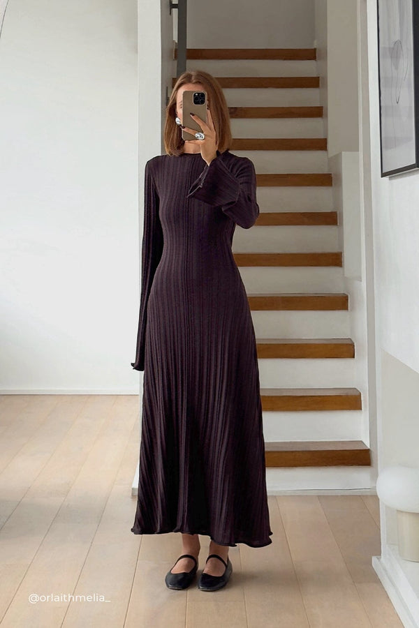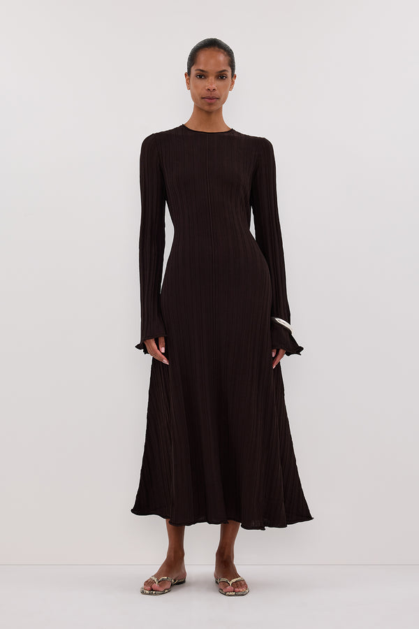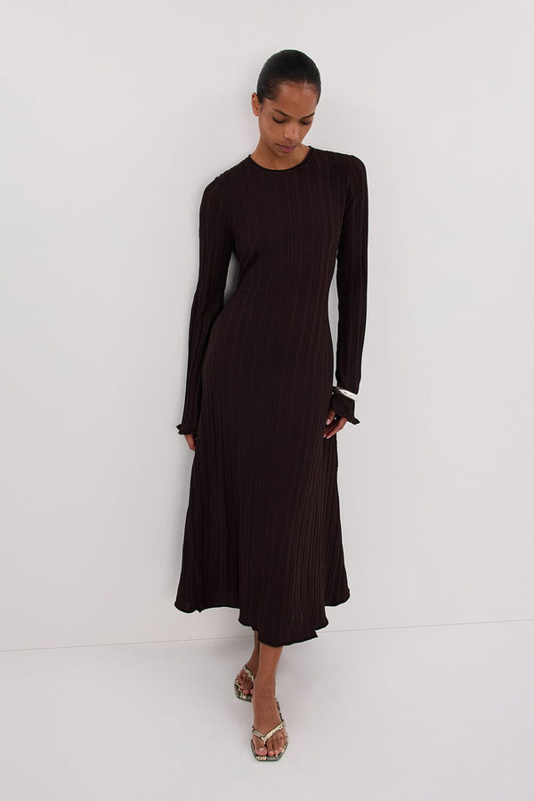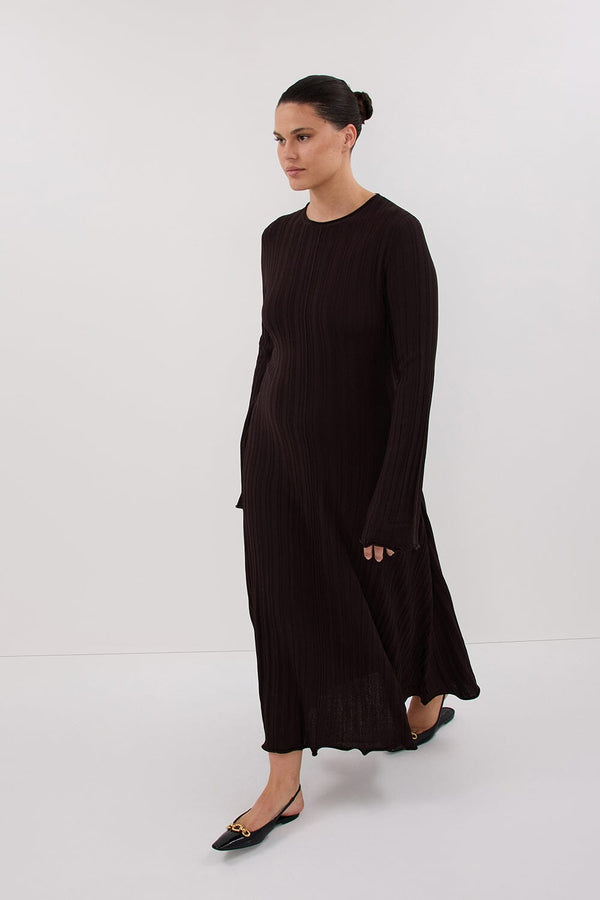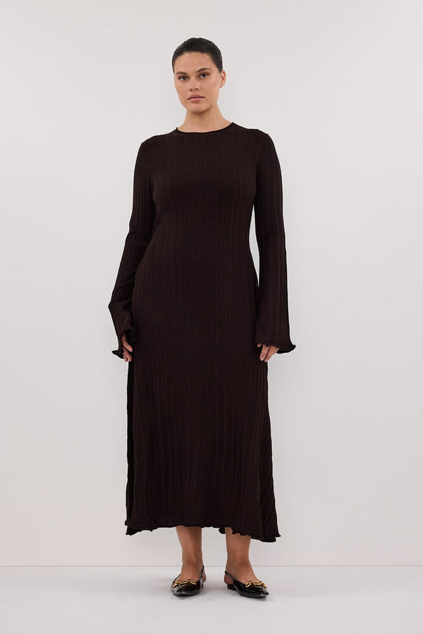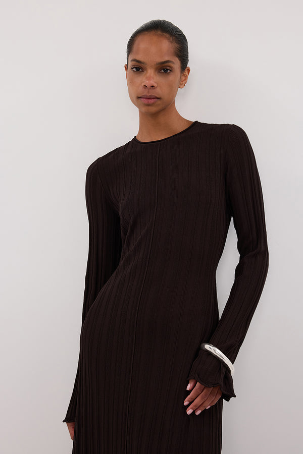 SYLVIA BITTER CHOC KNIT MIDI DRESS