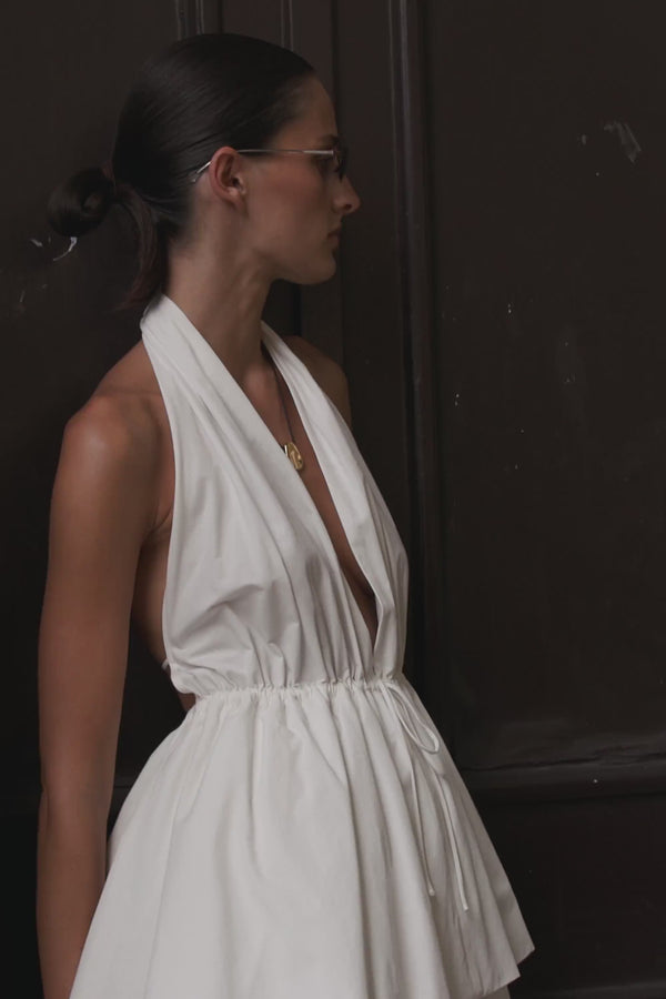 TAMMY WHITE SLEEVELESS COTTON HALTER TOP