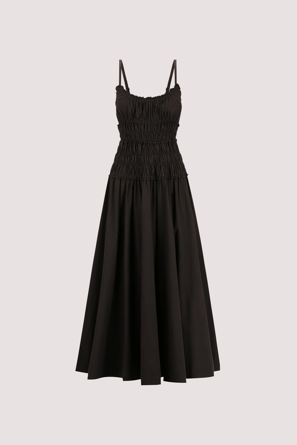 TOBY BLACK COTTON MIDI DRESS