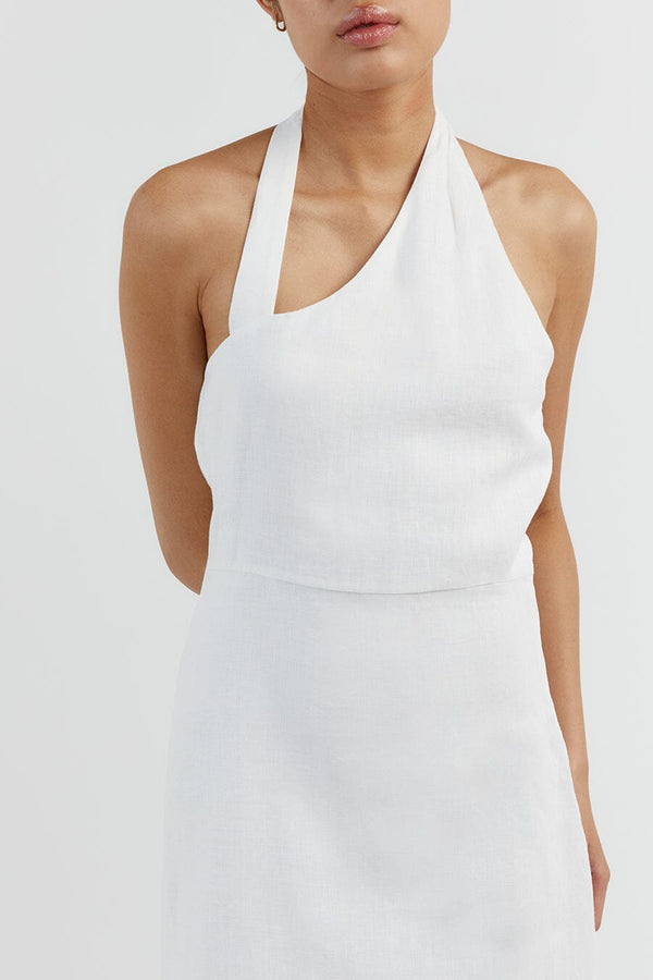 ZOEY WHITE ASYM LINEN MINI DRESS